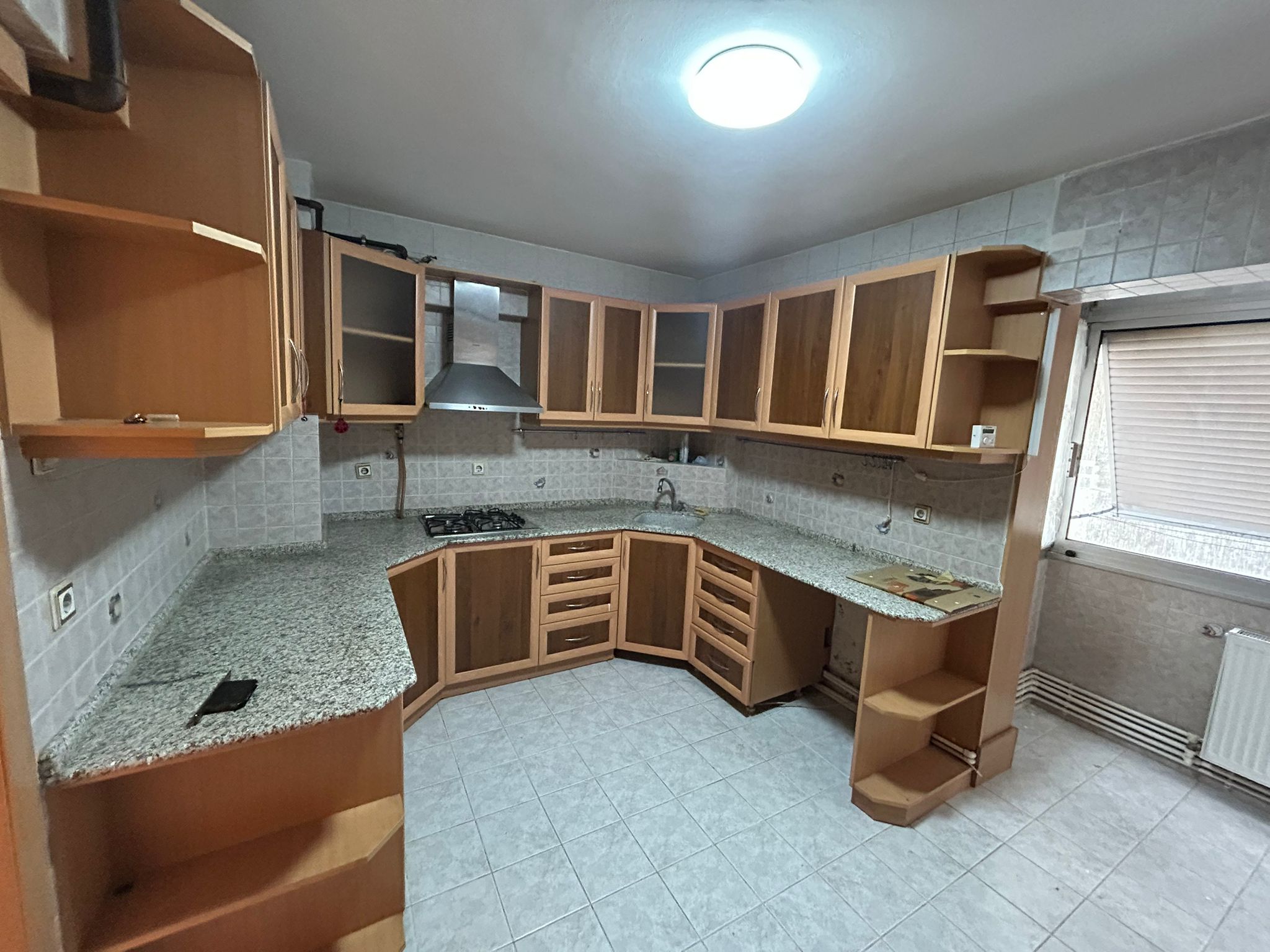 Mutfak: Ahşap dokulu dolapları ve geniş tezgah alanıyla oldukça kullanışlı, kapalı mutfak planı.
